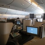 Wie im Flug vergeht der Flug (hehe kleines Wortspiel) nach London Heathrow. Die Zeit bis zum Anschlussflug nach Los Angeles verbringen wir in der Lounge der British Airways. Zum Schluss müssen wir uns noch beeilen um das Boarding nicht zu verpassen. Eindrücklich wenn 469 Passagiere bereit zum Einstieg sind und am Gate warten. Der A380 ist wahrlich ein Riesenvogel. Die Trägheit dieses Ungestüms zeigt sich vor allem beim Start. Eine gefühlte Ewigkeit dauert es, bis die erforderliche Flughöhe erreicht ist.