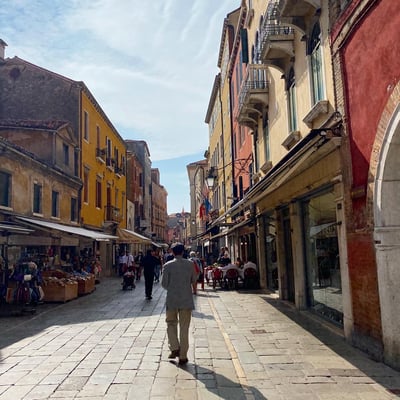 Wir laufen die rund 2 km vom Parkhaus in die Innenstadt. Schon nach wenigen Minuten zieht uns die Schönheit der Stadt den Ärmel rein. Es kommt ein wenig Disneyland-Feeling auf. Die Häuserfassaden und Kanäle sind so schön, dass sie schon fast als Kulissen durchgehen könnten. Unser erstes Ziel ist das Caffé Florian am Markusplatz. Dieses Lokal ist einer der trouristischen Hotspots und feiert dieses Jahr den 300. Geburtstag. Das Caffé Florian gilt als ältestes Café der Welt. Auf dem Markusplatz hat es vermutlich weniger als 50 Personen. Es laufen Vorbereitung für die Diplomfeier der Universität. Während dem Soundcheck läuft Toto über die Lautsprecher, es ist ein magischer Moment. Gänsehaut vom Scheitel bis zu den Zehen!
