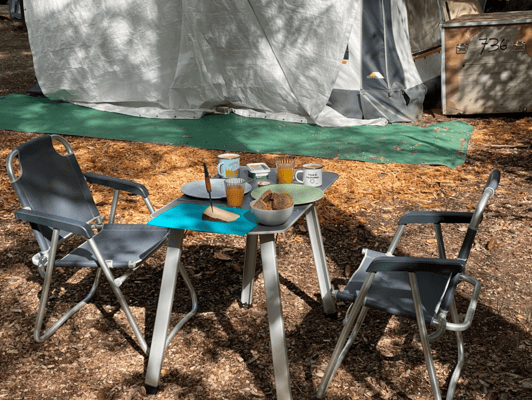 Nach einem Outdoor Frühstück machen wir eine Wanderung quer durch das angrenzende Naturschutzgebiet. So schön und perfekt zum runterfahren. Wir haben gelesen, dass irgendwo auf dem Weg ein weiterer Camping Platz ist. Der soll sogar einen Bioladen haben, da müssen wir unbedingt hin, es gibt sicher etwas Leckeres zu kaufen.