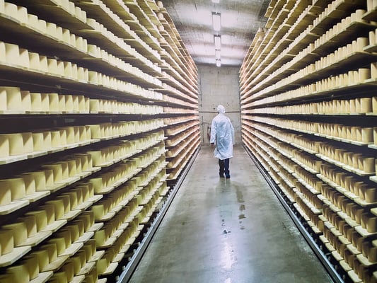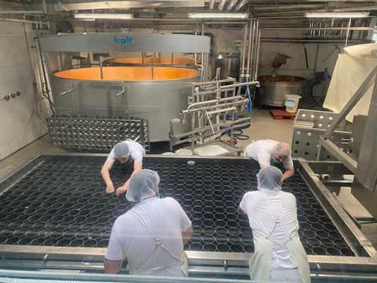Als einzige Besucher kommen wir in den Genuss einer 1:2 Betreuung der netten Dame im Visitor Center, welche zum Glück auf Deutsch alles Wissenswerte über ihren Käse erzählt. Hier einige Zahlen: