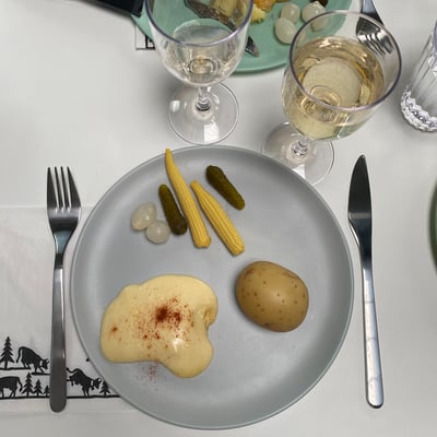 Wir lassen uns die gute Laune vom fiesen Wetter natürlich nicht verderben. Mini Racletteöfeli aus der Box 2 rausnehmen. Lokaler Weisswein, Raclettekäse von Spielhofer, Kartoffeln vom Bauer unterwegs und was es sonst noch alles für das Schweizer Nationalgericht braucht, auf den Tisch! Alles da was es für einen gemütlich Abend braucht! I love Camping!