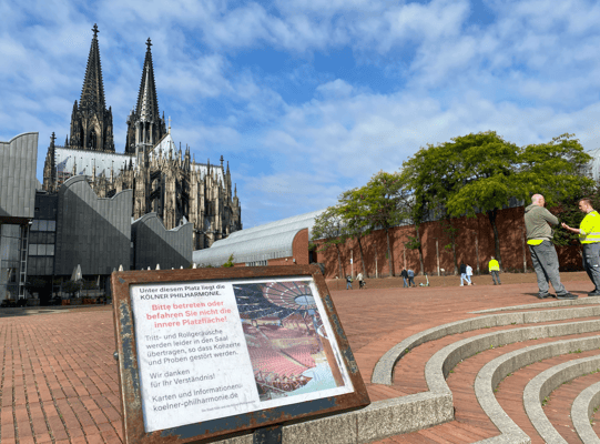 P.S. Sie ist wahr, die Geschichte, die auch von Mario Barth ausführlich breitgeschlagen wurde! Wegen störender Geräusche darf der Platz über der Kölner Philharmonie etwa 1000 Mal im Jahr nicht betreten werden. Bei Konzerten, Proben oder Aufnahmen wird der Heinrich-Böll-Platz seit 1999 durchschnittlich drei Mal am Tag gesperrt. Aufgrund schlechter Schalldämmung wird jeder Schritt direkt in den Konzertsaal übertragen. Auch wir wurden umgeleitet. 4 Ordner haben den Platz sozusagen hermetisch abgeriegelt....wäre ja auch eine Schande, wenn die erste Geige aus dem Takt gerät!