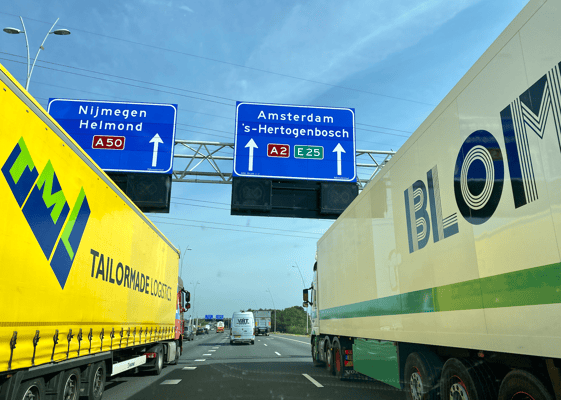 Ohne Tempolimit fahren wir an die Grenze und treten zünftig auf die Bremse! In Holland ist die Höchstgeschwindigkeit gemäss Beschilderung auf der Autobahn bei 100 km/h. Okay....dann tuckern wir wie alle anderen gemütlich weiter. Wir haben ja nicht unbedingt ein kleines Auto, neben den riesigen LKW’s aus allen Herren Ländern, kommt teilweise schon ein mulmiges Gefühl auf. Der Wind bläst kräftig und die tonnenschweren Riesen schwanken ganz schön.