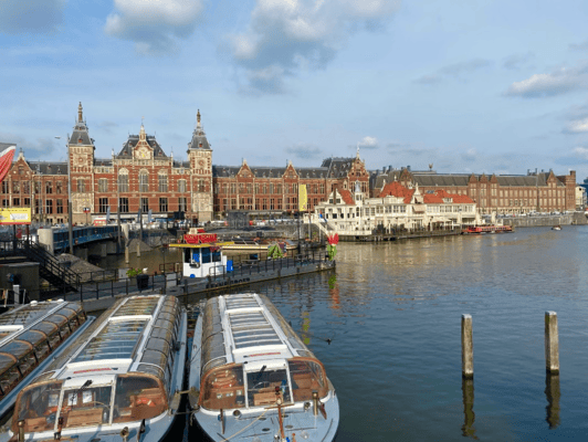 Am späteren Nachmittag stehen wir in der Hotel Lobby des Sir Adam’s. Natürlich tragen wir Maske, merken aber relativ schnell, dass wir die einzigen sind. Die nette Dame an der Rezeption begrüsst uns herzlich und teilt uns mit, dass in den Niederlanden nur noch im öffentlichen Verkehr Maske getragen werden muss. Es sei aber kein Problem, wenn wir sie weiterhin tragen wollen. Äh – nein, da sind wir jetzt ehrlich gesagt nicht so scharf drauf! Unser Hotel liegt direkt gegenüber dem Hauptbahnhof. Hier heisst gegenüber "mit viel Wasser dazwischen". Es fährt direkt vor dem Hotel während 24 h ca. alle 5 Minuten eine Fähre, die Überfahrt dauert nur 4 Minuten und die Nutzung ist kostenlos.