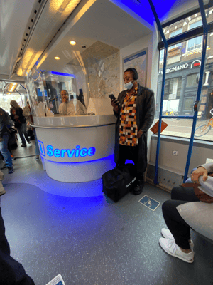 Letzter Tag in Amsterdam, etwas Kunst ist fällig! Unser Ziel ist mit dem Tram 20 Minuten vom Hauptbahnhof entfernt. Auf der Fahrt lernen wir die hohe Kunst des Kundenservices kennen. Ins Tram integriert ist eine Theke hinter der ein Mitarbeiter der Verkehrsbetriebe GVB sitzt. Er verkauft Tickets, beantwortet Fragen der Reisenden, mahnt durchs Mikrofon zum Tragen der Maske, dirigiert die Fahrgäste im Fahrzeug und gibt wo nötig Instruktionen. Die Stimmung im Tram ist super, daran trägt der Herr des Kundenservices einen grossen Anteil, top! Ebenfalls speziell für uns ist, dass wir beim Einsteigen einchecken und beim Aussteigen auschecken müssen (Ticket ans Lesegerät halten).