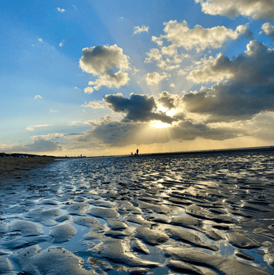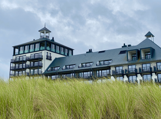 Am Sonntag ist das Wetter etwas besser als vorhergesagt. Darum nutzen wir die Chance und erkunden den Ort. Wir laufen an vielen geschützten Bauten aus der Belle Époque vorbei und auch der Bahnhof sieht aus wie aus einem Schwarz-Weiss-Film. Er ist komplett verschnörkelt, hat Holzelemente und ist offensichtlich sehr alt! Das nostalgische Flair entfaltet sich in den gewundenen Alleen zwischen den Dünen und auf den Grundstücken der vielen Villen weiter. Wir kommen uns teilweise wie auf einer Zeitreise vor. Unterwegs kaufen wir noch ein Baguette und kleine Patisserie für Kaffee und Kuchen. Als am Abend plötzlich und völlig unerwartet der Himmel aufreist und die Sonne scheint, stürzen wir uns in die Gummistiefel und laufen ein Stündchen dem Strand entlang. Perfekter Tagesabschluss! Wondermooi!