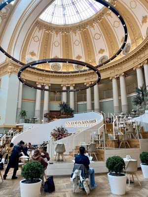 Die flämischen Gebäude mit den kunstvollen Fassaden sind so schön, wir können uns kaum satt sehen. Wir laufen kreuz und quer weiter. Irgendwann sind wir beim Bahnhof „Antwerpen-Centraal“. Das Gebäude mit der 75 Meter hohen Kuppel sieht eher aus wie eine Kathedrale. Ich habe gelesen: Einer der schönsten Bahnhöfe der Welt!