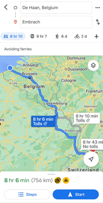 Am Donnerstag fahren wir früh am Morgen los. Es liegen knapp 760 km Meter vor uns. Auf dem Heimweg stellen wir übrigens noch unseren neuen Länderrekord auf. In einem Schnurz: Belgien – Luxemburg – Frankreich – Deutschland - Schweiz, das ist unser länderreichster Heimweg auf der Strasse!