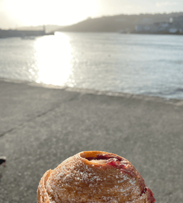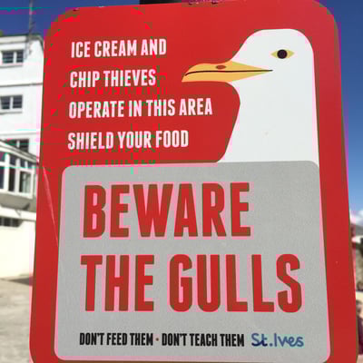 "A Cruffin a day keeps the doctor away", oder so ähnlich! Auf jeden Fall hat er sehr, sehr, sehr gut geschmeckt, zusammen mit dem Kaffe in der Sonne auf dem Bänkli, direkt am Hafen von St Ives! Zwei ganz hartnäckige Möven wollten unbedingt auch ein Stück davon haben. Sie haben sich immer wieder angeschlichen um sich in die optimale Schnappposition zu bringen. Wir kennen das Game in- und auswendig und halten sie in Schach. Die Möven sind in Cornwall ein ganz schwieriges Thema. Zum einen stehen sie unter Schutz und gehören einfach zum Meer dazu. Gleichzeitig sind sie aber auch eine Plage und richtig dreiste Diebe. Wenn man eine Sekunde nicht aufpasst, klauen sie einem das Essen auch direkt aus der Hand. Es gibt vor allem im Sommer immer wieder blutige Kinderfinger, da die Vögel genauso auf Fish & Chips, Pasties und Ice Cream stehen wie wir. Auf Distanz sind sie ja herzig, die grossen Exemplare sind hier aber bis zu 2 kg schwer und damit richtige Brummer. Also aufgepasst, Augenkontakt mit dem Dieb aufnehmen und das Essen immer nahe am Körper halten!