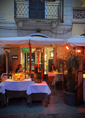 Heute Abend ist es 10 Grad und das Quartier ist voll von gut gelaunten Menschen. Toll, sich so durch die Gassen treiben zu lassen. Zum Glück haben wir einen Tisch reserviert, vor diversen Lokalen bekommen wir mit, dass Gäste ohne Reservierung weggeschickt werden. Auch die Aussenplätze sind komplett belegt – es ist ja schliesslich auch Samstagabend!