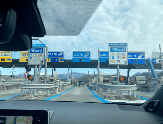 Mit grosser Kelle werden wir bestimmt rausgewinkt, Buongiorno! Ja, Hallihallo! Controlle doganale, parla italiano? Zum Glück regelt H-P das! Nachdem unsere Papiere, diejenigen des Autos und das Auto selber kontrolliert wurden, waren wir gedanklich bereits am Weiterfahren. Nö, es geht in die nächste Runde. Alles Gepäck ausladen und zur aufgestellten Festbankgarnitur rüberbringen. Ein Gläschen Prosecco wär’ jetzt noch cool, aber für das stehen die Outdoormöbel vermutlich nicht bereit. Mittlerweile stehen 5 Beamte um unser Auto rum und tatsächlich wird jedes einzelne Gepäckstück minutiös kontrolliert. Teilweise werden Gegenstände sogar rausgenommen. Die Quittungen habe ich zum Glück griffbereit und betragsmässig sind wir auch im grünen Bereich. Ich war ja vorgestern noch kurz bei GAP: 2 T-Shirts und ein Sommerkleid! Einer der Beamten wühlt in meiner Tasche und zieht treffsicher das Sommerkleid raus und wedelt leicht damit. Es ist sogar noch das Preisschild dran. Ein leichtes lächeln zieht über sein Gesicht. Ist das neu? Ja genau! H-P sagt ihm, dass dieser Artikel auf dem Kassenzettel von GAP zu finden ist, der sein Kollege in den Händen hält. Die Herren finden dann unter den drei aufgeführten Artikel das Kleid! Ein Match! Alles OK! Weiter geht’s aber nicht im Sinne von weiterfahren, nein mit der Kontrolle! Nachdem mein Kosmetikartikel begutachtet werden, ist jetzt als nächstes die Tasche von H-P dran. Gewühlt und gefunden! Eine leere Schachtel einer Ray-Ban Sonnenbrille! Sogar das Reinigungstuch ist noch originalverpackt (ich habe bis jetzt nicht verstanden wieso). Wo ist die Brille? Im Einsatz! Neu? Nein, in Freiburg, Germania gekauft. OK! So jetzt aber! 35 Minuten später sind wir «good to go» und fahren weiter!