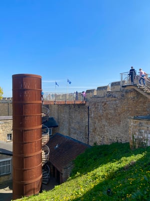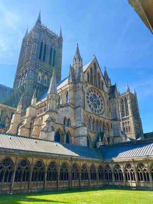 Schon die ersten Häuser sind so schön und das erste Restaurant so einladend, wir können nur knapp widerstehen, uns nicht direkt auf die Terrasse in die Sonne zu setzen. Für einen Überblick zum Start, eignet sich der Wall Walk auf den mittelalterlichen Mauern des Lincoln Castle. Kaum stehen wir auf der Mauer, sehen wir sie: Die Kathedrale von Lincoln. Wow! Knapp 300 Jahre war sie das höchste Gebäude der Welt und sie dominiert das Bild der Stadt noch immer. Auch wenn die 160 Meter heute nicht mehr für den Rekord reichen, Lincoln Cathedral gilt noch immer als eines der schönsten gotischen Bauwerke der Welt und sie ist riesig, wir verlaufen uns fast. Besonders ins Auge stechen mir die wahnsinnig aufwändigen und detaillierten Steinmetzarbeiten. Auch als Filmkulisse musste das Urgestein schon oft hinhalten. Es wurden z.B. diverse Szenen der Dan Brown Verfilmung «The Da Vinci Code» hier gedreht.