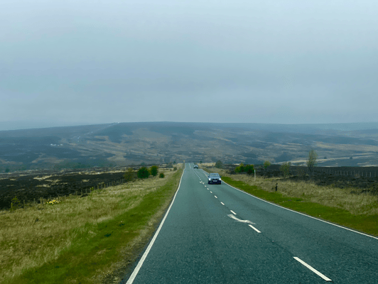 Der Blick auf unendliche Weite dieser Region wir durch das düstere Wetter etwas getrübt. Wir können aber durchaus erahnen wie wunderschön die Natur wäre, wenn die Sonne scheinen würde! Unser Van muckts rum, zeigt wiederholt an, dass der Reifendruck auf der linken Fahrzeugseite zu tief ist. Mit etwas Air an der Tankstelle lässt sich das, hoffentlich nachhaltig, beheben.