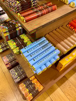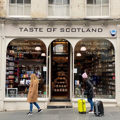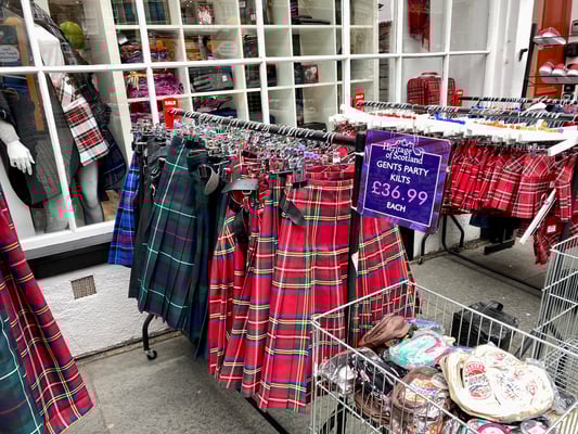 Auch ein paar andere Schweizer sind hier. Ich bin gerade daran, in ein Geschäft von Kiltane reinzugehen, im Schaufenster habe ich einen Kaschmirschal gesehen, der mir gefällt. Da höre ich eine Frau sagen: Wow, händ diä schöni Schäl, da mues ich inä go luäge. Ihr Mann im breitesten Thurgauer-Dialekt: Nai Schatz, da zalsch nur d’Marggä! Lueg döt vornä im Souvenir-Shop hät’s au schöni Sachä! Dann zeigt er auf Polyester-Schals im rot/scharz Schotten-Carré-Muster, Made in China. Was für ein Banause, ich fasse es nicht. Vergleicht Handmade Cashmere aus Schottland mit China-Scheiss! Sie hört nicht hin, winkt ihm kurz zu und geht vor mir zu Kiltane rein. Richtig so, hier gibt’s Qualität! Ob sie was gekauft hat, habe ich nicht verfolgt, ich selber habe die Beute nach Highlander-Manier erlegt!
