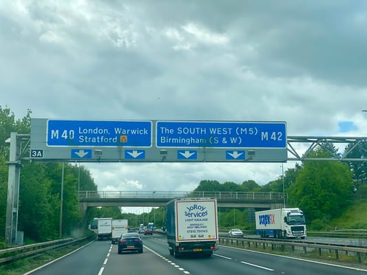 An einer Verzweigung auf der Autobahn sind wir fast versucht die M5 zu nehmen und Richtung Südwesten zu fahren. Jetzt noch ein Abstecher nach Cornwall, das wäre sensationell. Geht leider nicht, am Freitag sind wir zurück im Büro. Also halten wir links und nehmen die M40 Richtung London.
