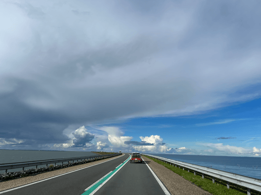 Leider ist der heutige Kurstag abgesagt. Es ist praktisch Windstill und gemäss Windfinder App schauts auch für den Rest der Woche nicht besser aus. Wir hätten gerne weitergeübt, denn heute wäre der vermutlich coolste Teil dran gewesen: Wasserstart mit dem Brett! Aber eben, wenn kein Wind weht, gibt’s auch keinen Start! H-P hat gelesen, dass es ca. 1 Autostunde von Zandvoort einen Ort gibt, der Zurich heisst. Auf was warten wir! Ab uf Züri! Schon die Fahrt ist spektakulär. Mehrmals führts uns über kilometerlange Brücken, links und rechts nur noch Wasser soweit das Auge reicht. Eindrücklich sind auch die riesigen Windparks für die Energieversorgung. Hätten wir doch in der Schweiz mehr davon gebaut!