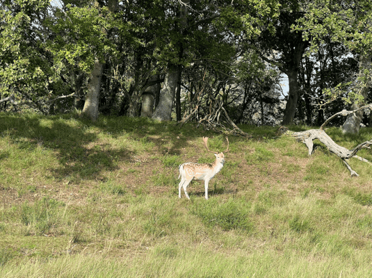 Vögel und Wasser haben wir in diesen Ferien schon viel gesehen, wir sind auf der Hirsch Pirsch! Anscheinend leben sie zu hunderten hier. Ich hatte mir fest vorgenommen, jeden einzelnen Hirsch, den ich heute sehe, zu zählen. Bin mir nämlich gar nicht sicher, ob ich in freier Natur schon mal einen Hirsch gesehen habe. Rehe schon öfter, aber Hirsche? H-P der Hirsch-Profi aus dem Engadin, hat selbstverständlich schon viele gesehen. Hat unterwegs noch recherchiert, da er noch nie so kleine Hirsche gesehen habe. Die hätten maximal Reh-Grösse, das sei doch irgendwie verdächtig. Die Recherche hat ergeben, es sind Dammhirsche. Also zum Glück alles echt, es sind keine Rehe mit Fake-Hirschgeweih, die für die Touristen rausgescheucht wurden. Meine nicht vorhandene Hirsch-Bilanz habe ich heute auf ein Top Niveau gebracht. Irgendwann so etwa bei 30 habe ich aufgehört zu zählen. Gefühlt hinter jeder dritten Düne und hinter jedem zehnten Baum hat einer gegrast, kurz aufgeschaut und weitergefressen. Was für ein Erlebnis!
