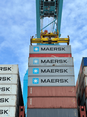 Mit dem Schiff fahren wir später direkt an die ganz grossen Containerschiffe ran und beobachten die Beladungs- und Entladungsprozesse. Bei den neuen Kranmaschinen sitzt der Kranführer nicht mehr auf dem Kran, sondern bis zu 2.5 km entfernt im Büro und arbeitet mit Joystick, Bildschirm und Kameras.