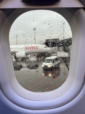 Wir erwischen um 04.45 Uhr glücklicherweise genau einen Slot, in welchem es nicht regnet um zur Bushaltestelle zu laufen. Kaum stehen wir unter deren Vordach, öffnet Petrus die Schleusen. Überrascht, wie viele Menschen um diese Zeit bereits unterwegs sind, steigen wir mit unseren riesigen Koffern, noch nicht ganz wach, in den Bus. Kaum losgefahren, verwickelt mich eine ältere Dame in ein Gespräch. Das ist ja eigentlich sehr herzig, nur ist es gerade 5 Uhr früh und ich bin aktuell noch nicht im Plauder-Modus. Das scheint sie wenig zu stören, anfangs habe ich noch geantwortet und irgendwann gemerkt, dass sie auch weiterredet, wenn ich nichts erwidere.