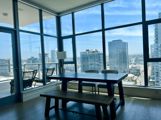 Wir informieren uns, wo wir hin müssen und laufen dann zum Office von American Airlines um eine Lost&Found-Meldung zu machen. Da stehen unsere Koffer! Hä? Eine nette Dame erklärt uns das sei „Early Baggage“. Sie hätten es schon dem früheren Flug von Phoenix nach San Diego transportiert. Okie Dokie, dann ist jetzt wieder alles im Lot. Ich melde mich bei unserem Host Alexandra. Wir treffen sie in 10 Minuten beim Apartment. Ja, so schnell ist man mit dem Auto vom Flughafen in Downtown San Diego! Cool, oder? Wir parkieren unseren Mietwagen in der Tiefgarage und sind froh, dass der Koloss aka weisses Beast mit Colorado Nummernschild so easy Platz hat! Was wir für ein Auto fahren? Das wird irgendwann später verraten...nur soviel: In unsere Tiefgarage zuhause könnten wir gar nicht reinfahren!