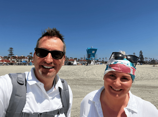 Wir warten übrigens jeweils nicht den ganzen Tag zuhause bis wir zum Baseball Game aufbrechen können. Heute waren wir in Coronado am Beach. Knapp 10 Minuten mit dem Auto bis ins Inselparadies. So fühlt sich die Halbinsel Coronado nämlich an. Wir laufen dem kilometerlangen traumhaften Sandstrand entlang. Neben dem weichen Sand ist das Kronjuwel der Insel das Hotel Del Coronado, das 1888 erbaut wurde und von rostroten, schlossähnlichen Türmchen gekrönt wird. Wissenswertes über die bemerkenswerte Geschichte des Del: Hier wurde im 1959 der Film «Some like it hot» gedreht. In der Hauptrolle war Marylin Monroe! Hot ist das Wetter nicht dafür wunderschön warm! 24 Grad und blauer Himmel.