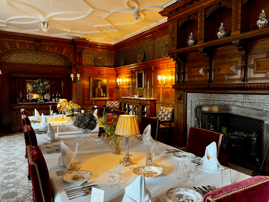 Die Gebäude sind top unterhalten und werden vom National Trust verwaltet. Wir können endlich wieder einmal unsere Mitgliederausweise rauskramen. Das Anwesen liegt am Fusse eines Hügels und ist von einem dichten Wald umgeben. Standesgemäss führt eine lange Auffahrt durch den Park des Hauses. Nein, wir können natürlich nicht filmreif vorfahren, sondern parkieren hinter dem Hügel - absolut unspektakulär! Im Park stehen skurrile Bäume, von denen angeblich viele aus dem Jahr 1634 stammen. Das ursprüngliche Haupgebäude stammt aus dem 17. Jahrhundert, nach einem Grossbrand wurde nach 1881 vieles wieder aufgebaut.