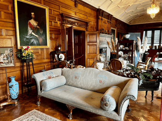 Auf der Besichtigungstour sehen wir prunkvolle Räume in denen es sich die damaligen Herrschaften richtig gutgehen liessen. Ich bin begeistert von den vielen schönen und alten Gemälden. Damit der ganze Laden lief, waren früher rum 70 Mägde und Knechte hinter den Kulissen nötig. Kinder betreuen, Essen kochen, putzen, Kleidung reinigen, Pferde pflegen, dekorieren, herrichten und was sonst noch so alles nötig war!