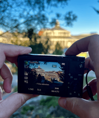 Gestärkt laufen wir Richtung Schloss Rosenberg, dort werden die Kronjuwelen von Margerethe II aufbewahrt, poliert und bewacht. Direkt daneben befindet sich eine riesige Kaserne. Bewachungspersonal hat’s also genug. Ein junger Herr in Uniform am Eingang sieht aus wie ein Kind. Ich glaub, ich werde älter! Wie viele andere Spaziergänger knipsen wir ein paar Fotos vom Schloss. Ein kleines Mädchen aus USA möchte nicht für's Foto posieren, sondern lieber die Enten füttern. Gar nicht amused ist sie, dass ihre Mutter kein Entenfutter in der Handtasche dabei hat! Wie kann das nur passieren?
