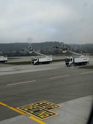 Es reicht gerade noch um bei Starbucks einen Kaffee zu kaufen und dann beginnt direkt das Boarding. Ich richte mich auf dem Sitz ein und aktiviere gerade meinen Ferien Modus, als eine sehr junge Dame beim Einsteigen vor sich hin flucht. Sie beleidigt die Kabinenbesatzung übel. Eine Frau in Uniform tritt sofort vor und sagt: So nicht in meiner Maschine, ist das klar? Alternative ist aussteigen und nicht mitfliegen. Die Frau mit den klaren Worten ist die Captain. Die Passagierin gibt sich kleinlaut und verschwindet muxmüslistill im hinteren Teil des Jets. Jetzt noch enteisen und wir können los!