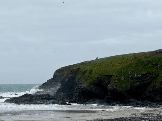 Beim National Trust Leuchtturm angekommen, laufe ich dem Costal Path entlang. Da das Wetter sehr unsicher ist, habe ich heute eher einen ausgedehnten Spaziergang als eine Wanderung geplant. Wie immer ist der Küstenwanderweg unglaublich spektakulär. Die Felsformationen sind so eindrücklich, ich kann mich daran auch nach dem xten Besuch in Cornwall einfach nicht satt sehen. Krachend schlagen die Wellen des stürmischen Atlantiks gegen die Felsen und der starke Wind lässt meine Regenjacke wie eine Flagge flattern. Ich laufe mehrere Meter über dem Meeresspiegel, unter mir unzählige Höhlen, in denen sich früher die Räuber der Meere versteckt hatten. «Long Ben» war im 18. Jahrhundert anscheinend der bekannteste Pirat. Er hatte unter anderem ein grosses Schiff eines indischen Herrschers überfallen. Die geraubten Klunker sollen noch heute irgendwo auf der Halbinsel versteckt sein. Ich halte auf jeden Fall die Augen offen! Ich bin übrigens gerade am Anfang des Ärmelkanals, nach Frankreich rüber sehe ich allerdings nicht...auch mit weit offenen Augen! Ouch...da ist mir doch glatt ein Sandkorn ins Auge geflogen!