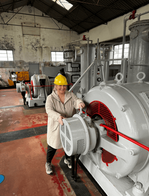 Um 11.00 Uhr finden wir uns beim Meetingpoint für die Führung ein, treffen auf unsere Gruppe und unseren Guide Grant (ich nehme an Mr. Grant). Er hat selbst noch in der Mine gearbeitet und führt uns durch die Anlage an die Orte, zu denen man nur mit Begleitung Zutritt hat. Wir werden nochmals informiert, dass die Tour nur mitmachen kann, wer gut zu Fuss ist und passendes Schuhwerk trägt. Es geht nämlich über Stock und Stein! Wir starten da, wo das Fördermaterial aus der Mine raustransportiert, zu einer Steinsauce gemahlen und nach Bestandteilen getrennt wird. Wer schon mal Goldrausch Alaska auf DMAX gesehen hat, kann sich das in etwa vorstellen. Im Unterschied zu Parker Schnabel, der zwei Waschtische hat, stehen hier aber 90, die mit Wasser die feinsten Zinnbestandteile rausgefiltert haben. Eine kleine Anlage lässt Grant für uns sogar laufen um zu zeigen wir alles funktioniert. Nachdem wir sozusagen «Über Tag» alles gesehen haben, fragt Grant, ob alle die Underground Tour mitmachen. Zack, die Gruppe halbiert sich. What? Die machen nicht mit? Was haben wir da genau gebucht? Eine Frau fragt nach, wieviel Platz man hat, sie habe Platzangst. Grant sagt, dann machst Du diesen Teil besser nicht mit.