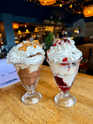 Frisch geduscht und hungrig wie Bären, kehren wir in St Ives im The Balcony ein, Glace gibt’s doch noch! Riesen Tönder!