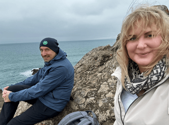 Heute bläst durchgehend ein eisig kalter Wind aka Atlantikbrise und zwar gefühlt immer gegen uns. Zum Glück haben wir einen heissen Tee im Rucksack, der wärmt von innen. Bei einer wie ich finde, wohlverdienten Pause habe ich ein kleines Hüngerchen und beisse genüsslich in den britischen Apfel! Mmmmh, sehr gut!