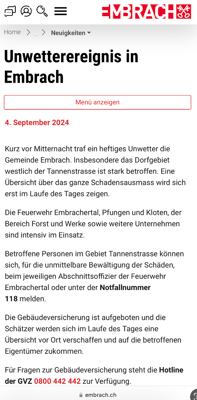 Wach wegen Jetlag lesen wir mitten in der Nacht, nach San Diego Zeit, auf 20 Minuten, dass in Embrach ein Unwetter getobt hat. Der Beschreibung nach, ist unser Zuhause mitten in der betroffenen Zone. Wir sind besorgt und das Gefühl 10'000 km weg zu sein und nichts machen bzw. abklären zu können, ist alles andere als angenehm.