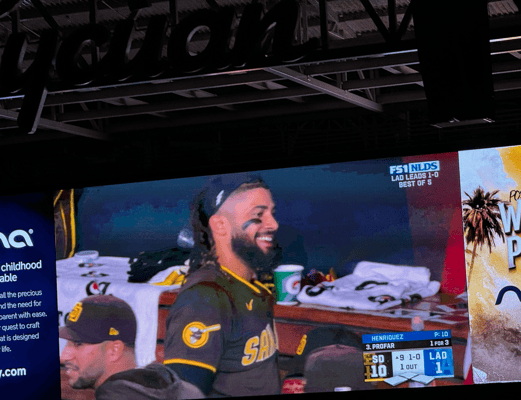 Seit wir hier sind, haben wir 4 Spiele der Regular Season im Stadion gesehen. Sämtliche anderen gespielten Spiele haben wir entweder zuhause am TV, in einer der vielen Sportsbars oder auf der Grossleinwand an der Watch Party im Petco Park gesehen.