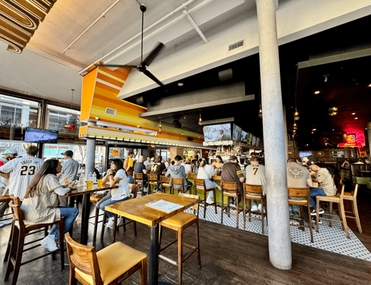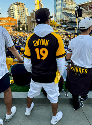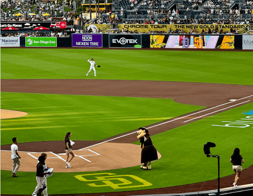 Und jetzt kommen wir ins Spiel! Obwohl die Padres lange Zeit im Schatten von grösseren Teams standen, ist ihre Fangemeinde äusserst loyal und leidenschaftlich. Die Fans von San Diego sind dem Team durch Höhen und Tiefen treu geblieben, die aktuellen Erfolge hat ihre Unterstützung noch verstärkt. Eingangs habe ich geschrieben, dass aktuell die zwei Vereinsfarben in der Stadt dominieren und das ist wirklich so. Nicht nur die Fans, die zum Spiel gehen, tragen Padres Gear, sondern auch die Mitarbeitenden im Supermarkt, die komplette Belegschaft in Restaurants, die Feuerwehr hat Flaggen auf ihren Fahrzeugen montiert, die Bankmitarbeiter tragen Padres Krawatten – ich könnte noch viel mehr aufzählen. An Tagen an denen Heim- oder Auswärtsspiele stattfinden, fällt man aktuell in Downtown sogar auf, wenn man nichts in Gelb/Braun trägt.