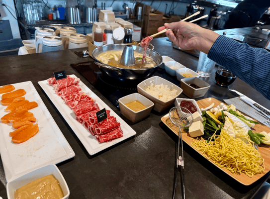 Jeder Foodie leckt sich hier geflashed die Finger! Wir geniessen das abwechslungsreiche Essen und sind auch dieses Jahr wieder von neuem begeistert. Vom Einkauf bei Whole Foods Market, um selbst frisch zu kochen, über den Ausflug mit Lunch auf eines der vielen Weingüter im Temecula Valley, die mexikanisch Küche mit all ihren bunten Facetten, frische Smoothies oder Bowls on the go, Frühstücken in den Restaurants und Cafés um die Ecke und natürlich auch mal einen Burger und Fries. Ein ganz besonderes Juwel haben wir im Quartier North Park gefunden: Tabu Shabu. Hot Pot, ähnelt unserem Fondue Chinoise. Das war so gut, unsere Geschmacksknospen sind regelrecht explodiert! H-P's Kopf ebenfalls, er hat sich nämlich vom Chef überreden lassen von den Hot Drops zu probieren, die ihm mittels Pipette in die Sauce geträufelt wurden! Hells Kitchen vom Feinsten! ....und alles was wir im Restaurant jeweils nicht schaffen, nehmen wir natürlich mit und essen es an einem der nächsten Tage! Herrlich!