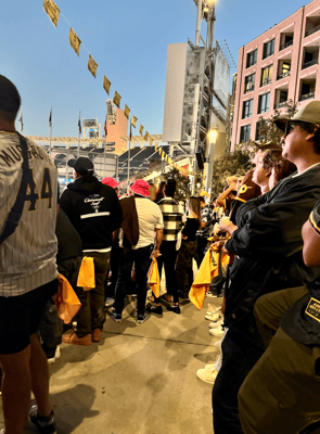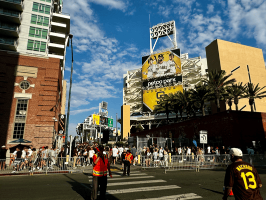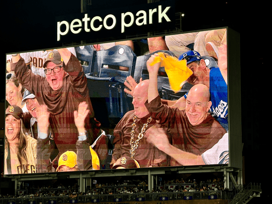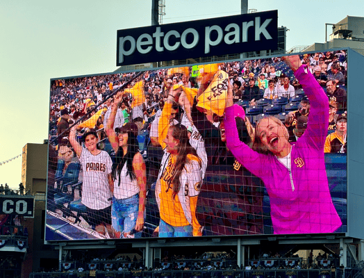 Weiter geht’s am Freitag in LA - Auswärtsspiel. Wir finden uns zur Watch Party in den am Petco Park angrenzenden Park ein. Erneut Granatenwetter, die Stimmung ist ausgelassen, es wird gefeiert und wir sind der Meinung: Einen Ausrutscher kann’s mal geben. Heute wird alles besser! Go Padres! Gebannt starren fast 2'000 Fans gemeinsam auf den riesigen Screen. Der Stadion-Sprecher Alex Miniak und das Animationsteam geben wieder alles, um die Fans auch beim Auswärtsspiel zuhause so richtig anzuheizen.