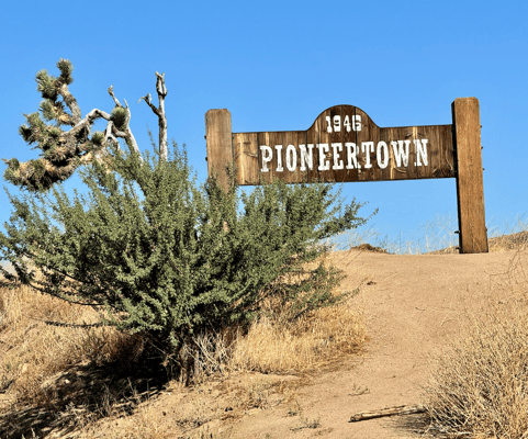 1946 haben damalige Filmmagnaten «Pioneertown» gegründet. Die wahre Entstehungsgeschichte ist aber heiss umstritten. Je mehr man darüber liest, desto verwirrender wird das Ganze. Der Ort wurde als landschaftlicher, smogfreier "All-Inclusive-Filmdrehort" angepriesen und verfügte über eine Vielzahl von komplett gebauten Western-Filmgebäuden wie sie so um 1870 aussahen. An der «Main Street» standen Ställe, Lagerräume, Saloons, ein chinesisches Restaurant(?), ein General Store und vieles mehr.