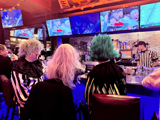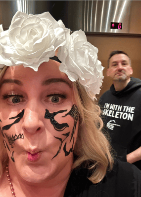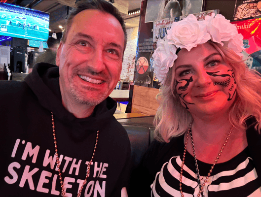 Elmar, mein Büro-Buddy, hat mich vorgewarnt. An Halloween gehe im Gaslamp Quarter San Diego die Post ab. Er war letztes Jahr hier! Verkleiden, Fasnacht etc. ist eigentlich gar nicht mein Ding. Wenn ich aber mittendrin wohne, wo das Gaudi zuhause ist, dann ist die Devise: Go big or go home! Das hat H-P bei unseren Verhandlungen rund um sein Kostüm auch gemerkt. Maske und Hoodie hat er geschluckt, Ganzkörper-Skelett-Anzug war undenkbar!