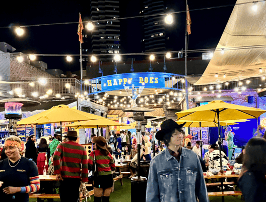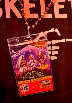 Online haben wir Tickets für den «San Diego Zombie Crowl» für USD 40 pro Person gebucht. Irgendwas «von diverse Locations machen mit», «gratis Eintritt und Welcome-Shots» (H-P ist ab sofort Halloween-Fan) und «grösster Event in Town und viel Fun» haben wir gelesen. Die Tickets müssen wir persönlich abholen. Die Dame an der Kasse fragt, ob wir wissen wie es funktioniert. Nein, ehrlich gesagt, haben wir keine Ahnung! Keine Ahnung – kein Problem! Sie erklärt: Ticket sichtbar um den Hals tragen. Hier eine Karte mit allen Locations, die am Event teilnehmen und hier Eure Coupons mit Infos drauf. Bei einigen Lokalen gibt’s vergünstigte Cocktails, andere offerieren gratis Schnaps, wieder andere geben Rabatt auf Essen etc. Have fun! Awesome, thank you!