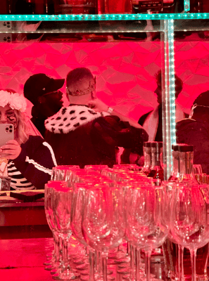 Der Security vom ersten Club will meinen Ausweis sehen. Hä! Tomaten auf den Augen? Ich bin mehr als doppelt so alt wie geforderten 21 Jahre. H-P streckt seinen Ausweis auch hin. Der Türsteher sagt, den brauch ich nicht, ist ok, danke. An die Bar des American Junkie und kaum den ersten Coupon hingestreckt, haben wir auch schon beide ein blass-beerenfarbiges Gratis-Getränk in der Hand. Cheers! Keine Ahnung was das ist, schmeckt aber ziemlich gut!