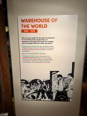 36’000 Personen pro Stunde! Das ist die Kapazität des öffentlichen Verkehrs, der Menschen von und nach Canary Wharf befördert. Eine unfassbare Zahl! Da fallen zwei Tourist*innen mehr heute kaum ins Gewicht. Und schon früher war das hier eine äusserst umtriebige Gegend: Das heutige Canary Wharf steht nämlich auf dem Gelände der früheren West India Docks, die im 19. Jahrhundert zu den geschäftigsten der Welt gehörten.