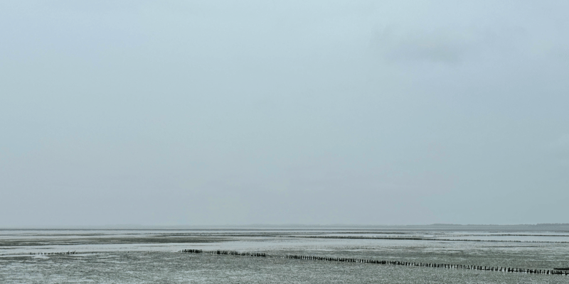 Ein anderer schlägt vor, mit einer Schaufel beim Vorderrad zu graben. Ich gebe mein Bestes mit unserem kleinen „Schüfeli“ aus dem Putzset. Wir wippen, graben, schieben mit vereinten Kräften. Keine Chance. Und wann ist eigentlich Flut?