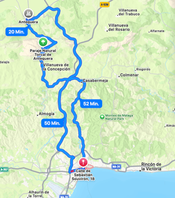 Beim Anflug auf Málaga klebte ich gestern richtiggehend am Fenster. Die Landschaft unter uns: ein wilder Mix aus schroffen Felsformationen, kargen Wüstenflächen und dazwischen immer wieder sattgrüne Oasen voller Obstplantagen. Und dann diese Weite! Genau das, was mir in der Schweiz manchmal fehlt. Für einen kurzen Moment fragte ich mich, ob das nicht fast ein bisschen nach dem Hinterland von San Diego aussieht. Besonders das Gebirge wirkt spektakulär und genau dorthin führt uns unser heutiger Ausflug.