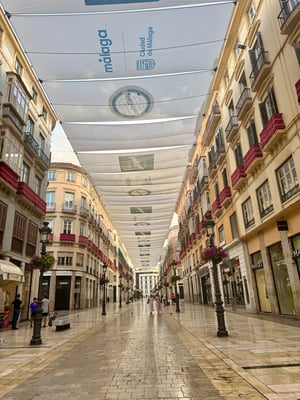 Hinter der City erhebt sich der Monte Gibralfaro, gekrönt von der gleichnamigen Burg aus dem 14. Jahrhundert. Rein rechnerisch wäre der Aufstieg locker machbar - wären da nicht andere Zahlen, die uns schnell auf den Boden der Tatsachen zurückholen. Aber von vorne: Um 08:15 Uhr starten wir vom Apartment, ausgestattet mit bequemen Sneakers, in leichten Klamotten und je einer Flasche Wasser. Nach wenigen Metern geradeaus laufen fühlen wir uns schon wie Gipfelstürmer. Wir lassen uns nichts anmerken, marschieren durch die noch leere Stadt und folgen dann der Wanderweg-Beschilderung.