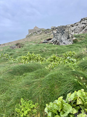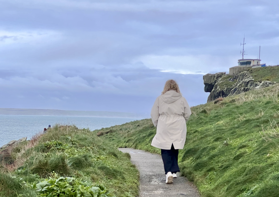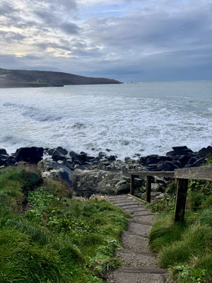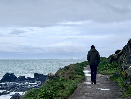 Das Wetter-Radar behalten wir im Blick. Am Nachmittag öffnet sich tatsächlich ein längeres trockenes Fenster, und es zieht uns sofort hinaus auf den South West Coast Path. Mit Trekkingschuhen und im bewährten Zwiebelschalen-Look starten wir direkt beim Apartment. Nach dem üppigen Lunch tut Bewegung richtig gut und die Kulisse ist einmal mehr atemberaubend. Cornwall liefert. Immer.