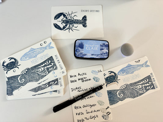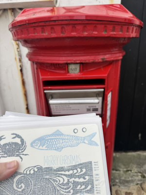 Mit St Ives verbinde ich neben sensationellen Ferien auch viele Stunden kreativer Arbeit, die ich in den letzten Jahren an der St Ives School of Painting verbracht habe. Über die Feiertage ist die Schule geschlossen, sonst hätte ich mir vielleicht einen kurzen Kurs zur Inspiration gegönnt. Ganz ohne Kunst geht es aber trotzdem nicht. Also habe ich Material für Weihnachtskarten mit coastal flair eingepackt und mir am Samstag mehrere Stunden Zeit genommen, diese zu produzieren. Konzeption, Designvorlage und Testdruck hatte ich bereits zuhause vorbereitet alles andere wäre hier zeitlich ein Wagnis gewesen. Mit dem Ergebnis bin ich happy und hoffe nun, dass die Karten noch rechtzeitig vor Weihnachten in den Briefkästen ankommen.