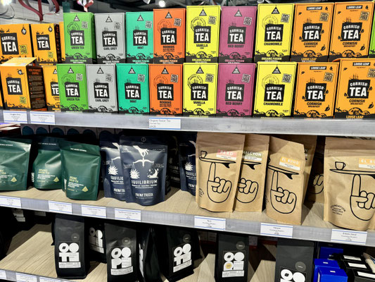 Bevor wir zurück nach St Ives fahren, machen wir noch Halt in einem unserer Lieblings-Delis. "The Great Cornish Food" verkauft ausschliesslich Überraschung! Produkte aus Cornwall. Ein absolutes Schlaraffenland. Crackers, Schokolade, Honig, Shortbread, Chips, Makrelen-Pâté (to die for), Weine, Spirituosen, Käse, Nüsse, Bier, Cider, Gemüse, Früchte, Pies, Kuchen, Kaffee, Tee, Marmeladen, Charcuterie, Fleisch, Fisch… ich könnte ewig aufzählen. Da ist genau das drin was es braucht um super lecker zu schmecken, komische E-Zahlen findet man selten und ich schlage vor, wir eröffnen in der Schweiz eine Filiale von "The Great Cornish Food". Hand hoch, wer das auch will!