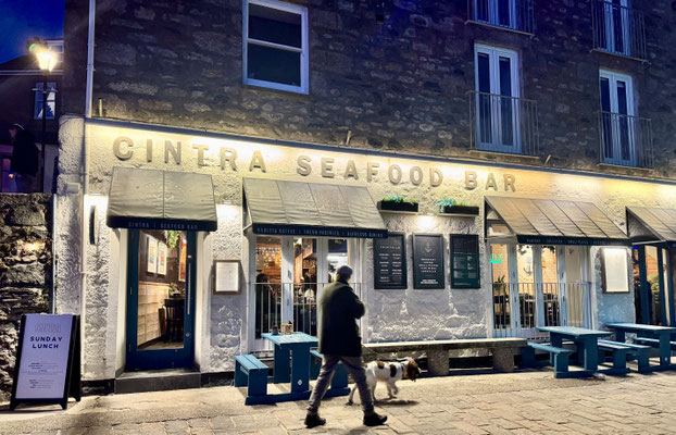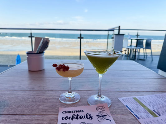 Um 14.30 Uhr wartet unser Tisch für den Late Lunch im Porthmeor Beach Café. Das Restaurant liegt am selben Strand wie unsere Ferienwohnung und ist eine absolute Herzensempfehlung. Schon im Sommer war klar: Heiligabend essen wir hier. Also haben wir bei der Reservation gleich einen der Pods gesichert.